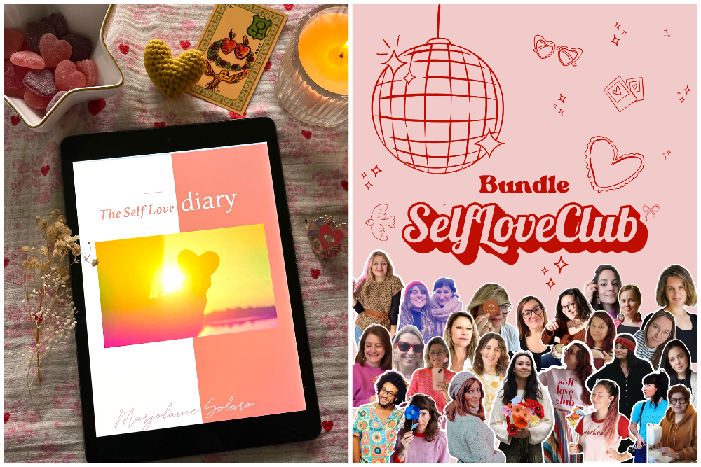 Mon ebook The Self Love Diary est disponible au sein du bundle Self Love Club au prix de 22 euros, en vente uniquement du 6 au 15 février. En achetant le bundle, vous vous offrez 26 ebooks (coloriage, broderies, tricot, crochet, rituels, DIY variés, couture, tissage…) d’autrices (et un auteur) talentueuses (comme Poulette Magique, Caro Tricote, Zakadit. Giancie et bien d’autres). Regardez ces couvertures qui font envie !